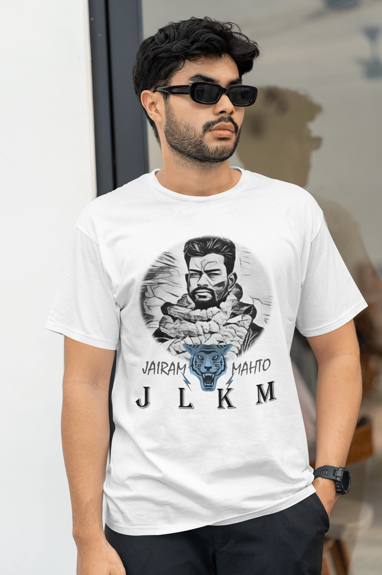 - Design: “Jairam Mahto JLKM Party” printed in bold, stylish font for a striking appeal.